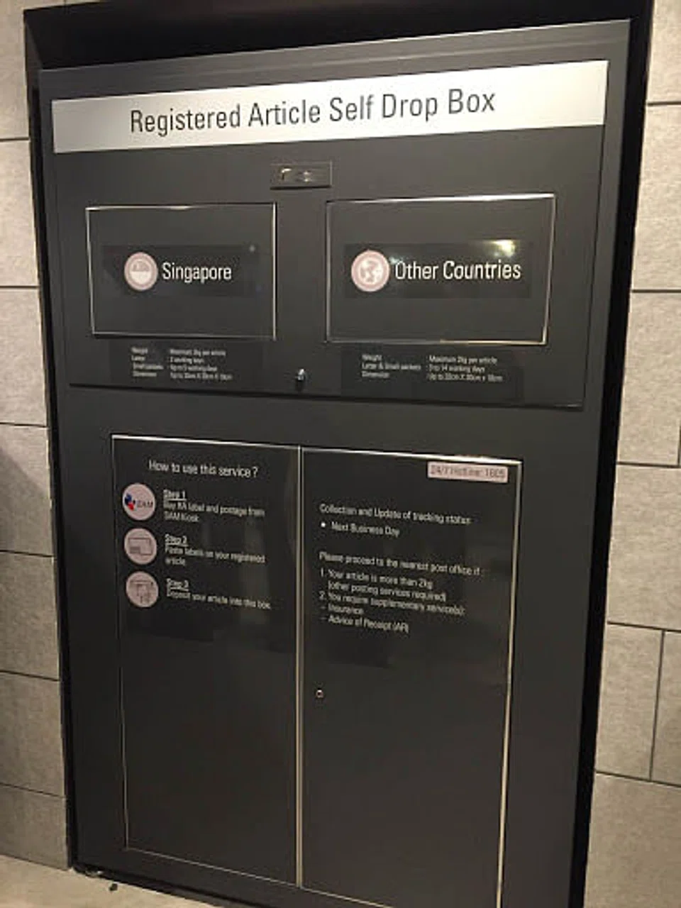 Its new SAM kiosks are augmented with a self-service posting box for registered articles - the first in Singapore.
