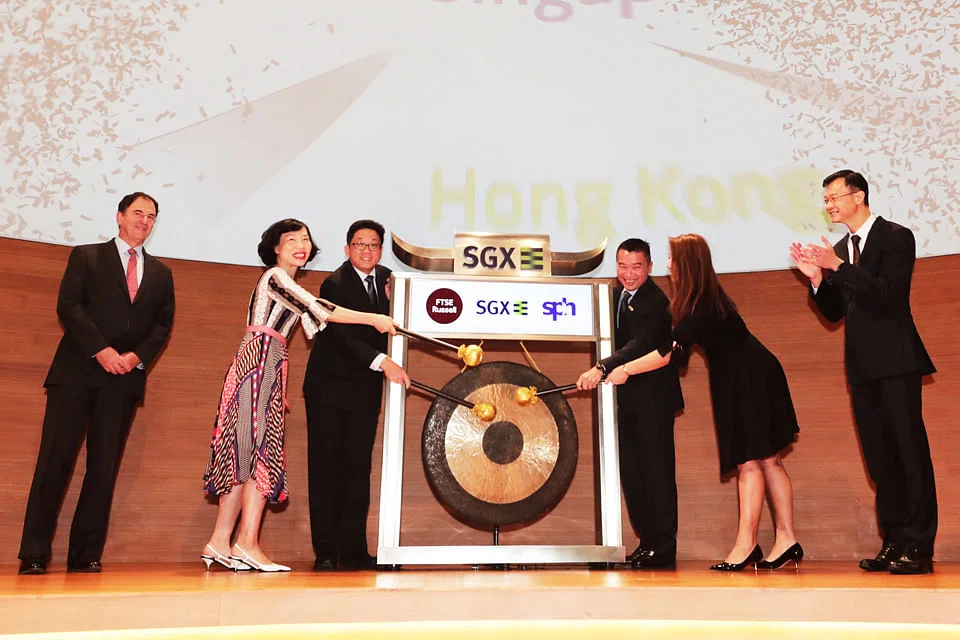 At the ceremony were Ng Yat Chung, chief executive officer of SPH; Jessie Pak, managing director, Asia, of FTSE Russell; and Loh Boon Chye, chief executive officer of SGX. They were joined by representatives from the three organisations.