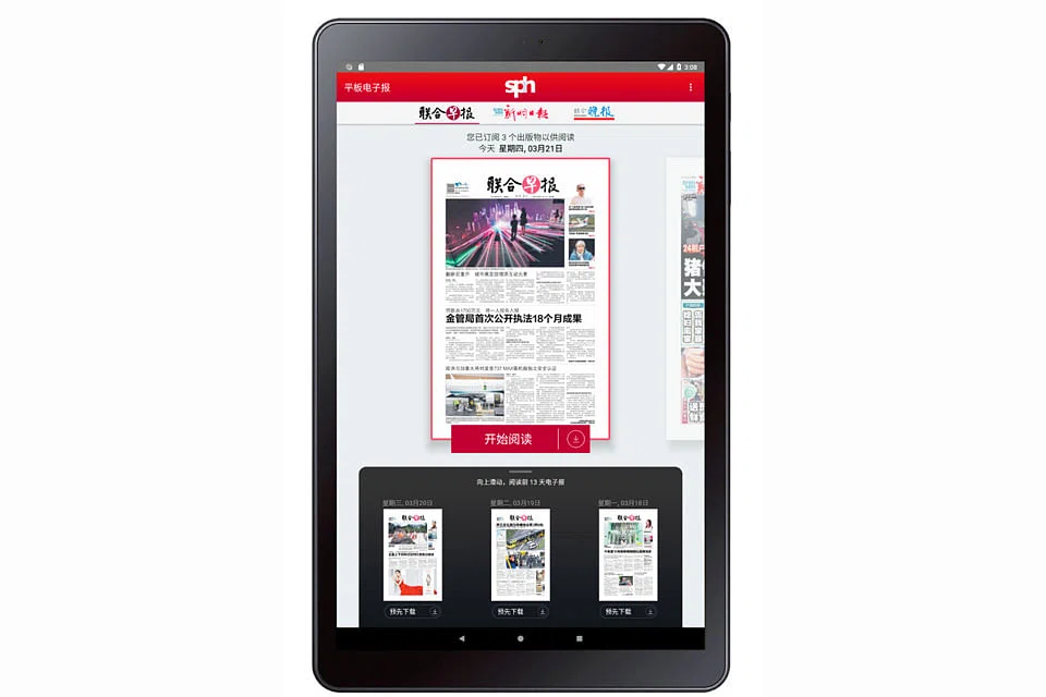 With a single subscription, readers will be able to access e-paper editions of Lianhe Zaobao, Lianhe Wanbao and Shin Min Daily News on the app, which will be preloaded on the latest Samsung Tab A, 10.5-inch Wi-Fi tablet, which is retailing at S$398.