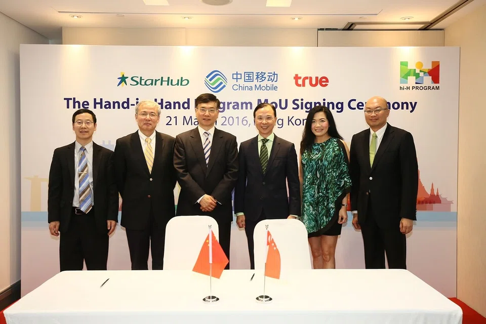 The collaboration will see China Mobile International, a unit of China Mobile, working with StarHub and Thailand's True Corporation plc under the former's "Hand-in-Hand Program", which was launched in Shanghai on July 14, 2015.