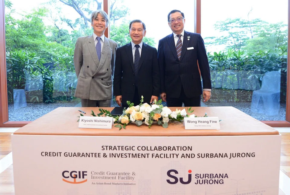 This has come about through a tie-up, the first of its kind in the region, between infrastructure consulting firm Surbana Jurong and currency-swap facility Credit Guarantee & Investment Facility (CGIF); the agreement was inked on Wednesday at the Global Infrastructure Initiative, a meeting of leaders in infrastructure and capital projects.