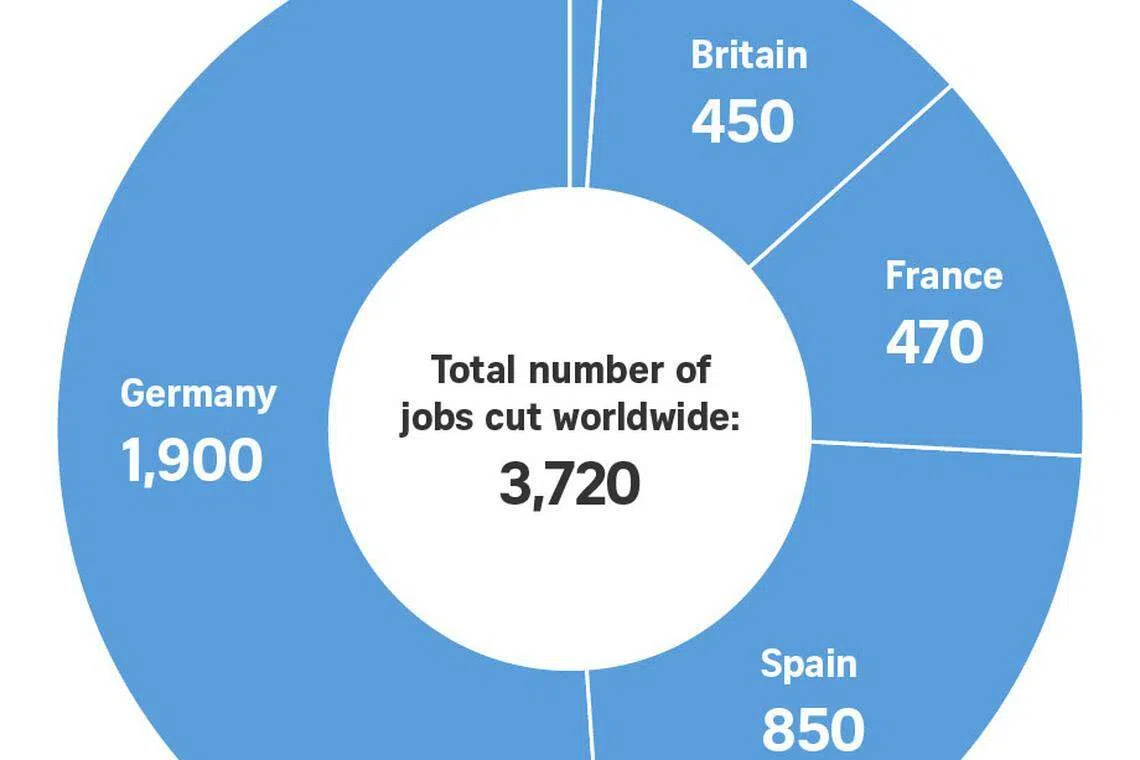 Yvonnick Dreno, a senior Force Ouvriere unionist said that 1,925 jobs would be affected in Germany, 860 in Spain, 465 in Britain and 470 in France.