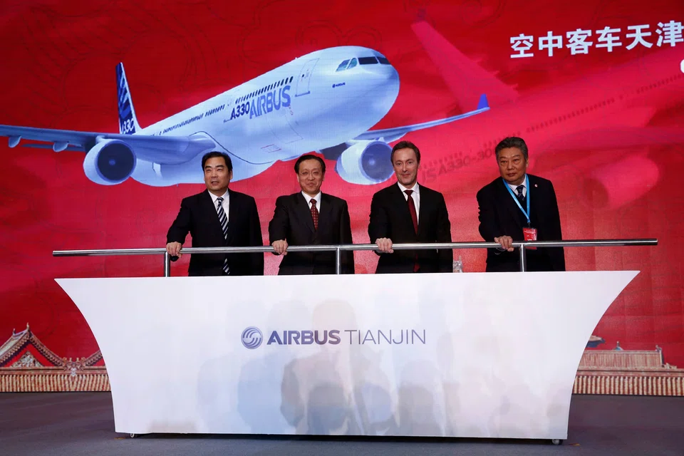 At a ceremony in the northern port of Tianjin Airbus CEO Fabrice Bregier and Chinese officials officially broke ground for the completion and delivery centre that will deliver two A330 planes per month.