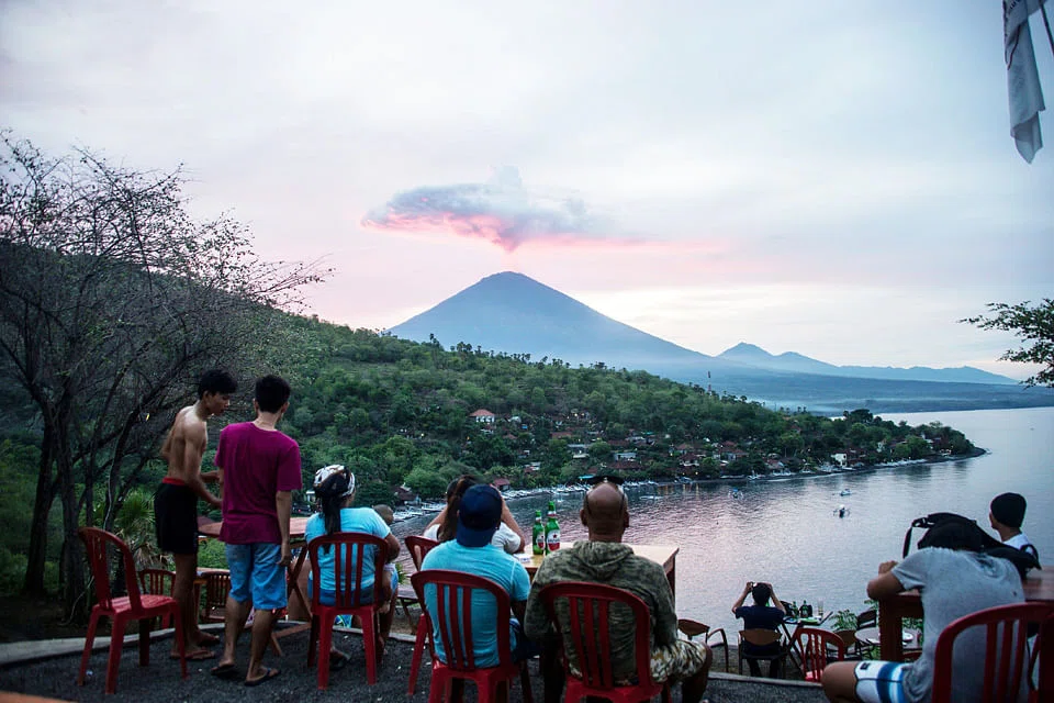 But a plume of smoke and ash still rose above Mount Agung on Thursday and the volcano, whose crater glows red, continued to rumble.