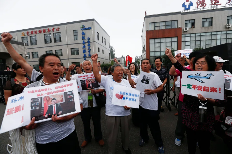 About 50 family members staged a noisy protest near the Malaysian embassy in Beijing and scuffled briefly with police who stopped them from entering a road leading to the embassy. "Malaysia, find the passengers," the protesters chanted.
