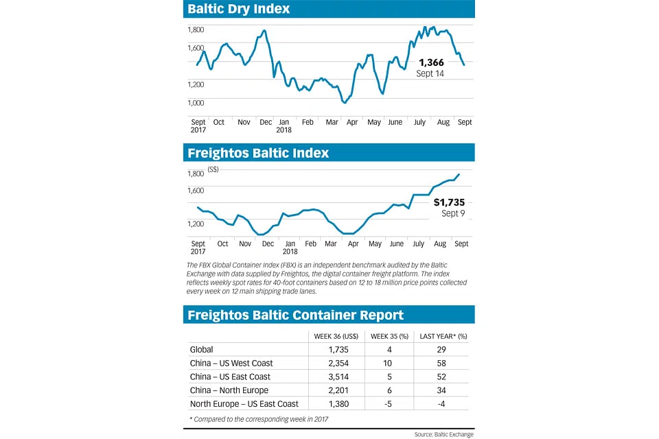 General Rate Increases (GRIs) have been announced for 1 October and 15 October, and more Bunker Adjusted Factor (BAF) increases are in the pipeline, so, for carriers, the outlook for prices should be good.