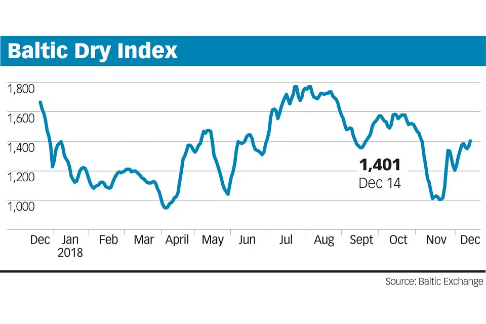 The Pacific market was again less active as Christmas approached. On the period front, a 37,000dwt vessel open North Coast South America went for four to six months at $12,000, with redelivery within the Atlantic.