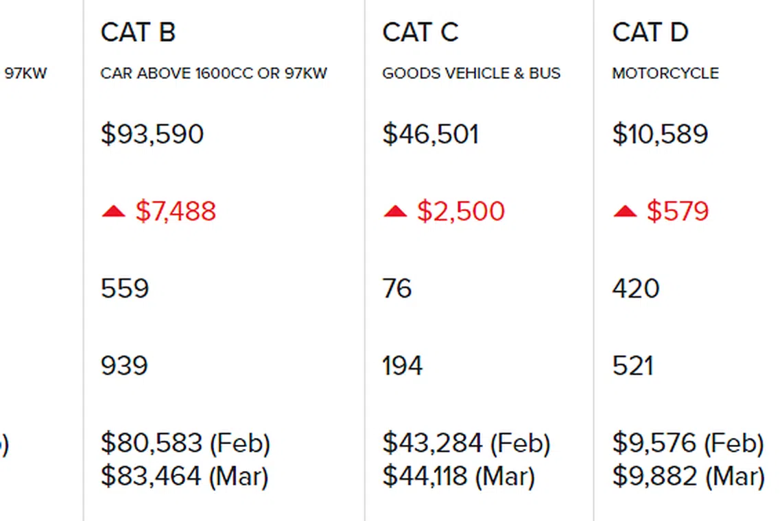 The sharp rise in prices run counter to any expectations that last week's Budget 2022 measures to tax wealth by raising the Additional Registration Fees on high end cars would dent demand for Category B certificates.