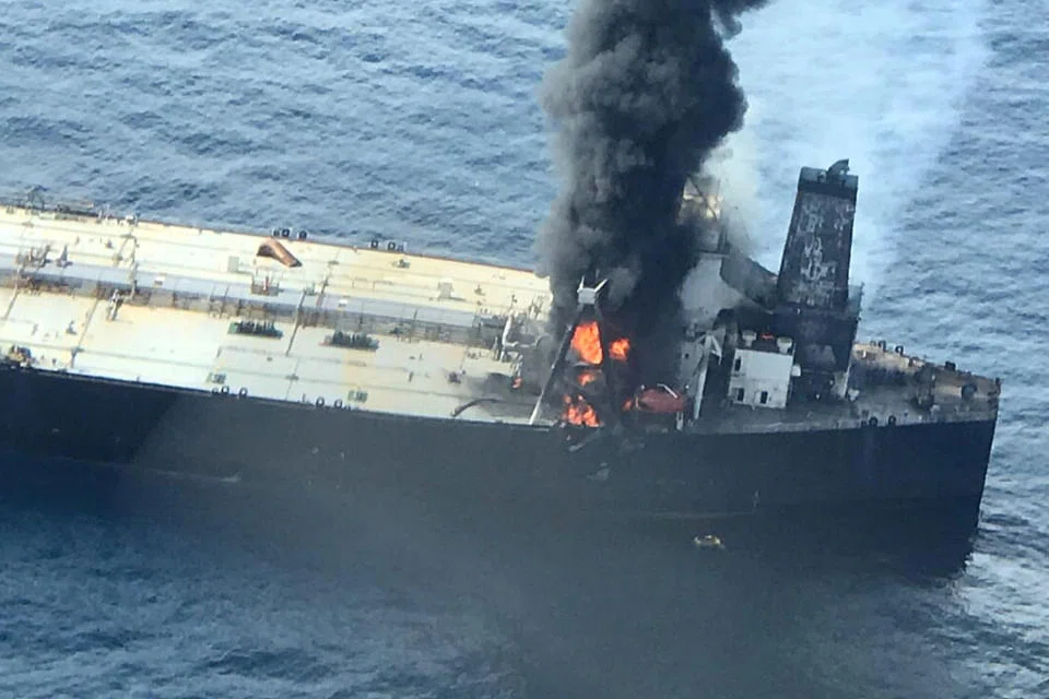 Photographs taken by Sri Lanka's air force showed extensive damage to the tanker's funnel, and thick black smoke and flames coming from the bridge, that sits just behind the cargo area.