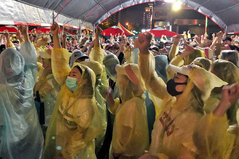 On Thursday, a giant inflatable balloon that read "Come home" was seen floating above Eva Air's headquarters. The cabin crew responded with a large sign saying "We can't see our way home yet".