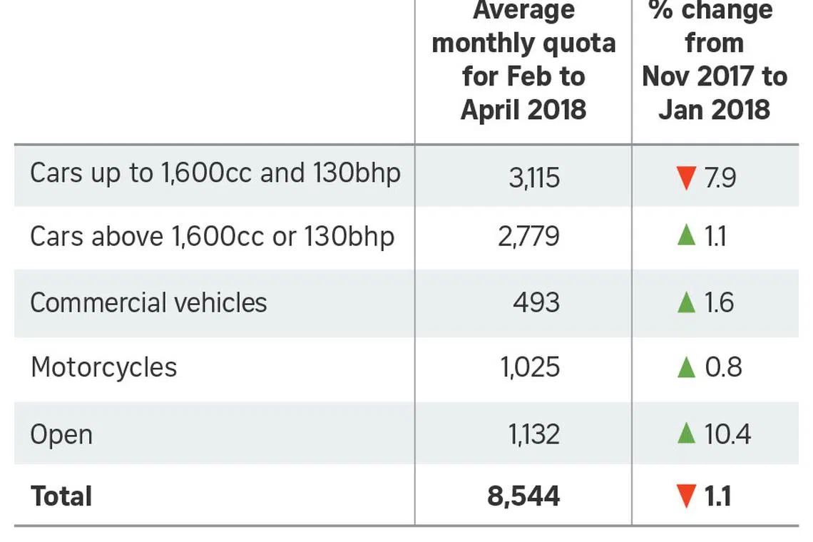 From February, the monthly average quota for commercial vehicles will go up slightly from 485 to 493.