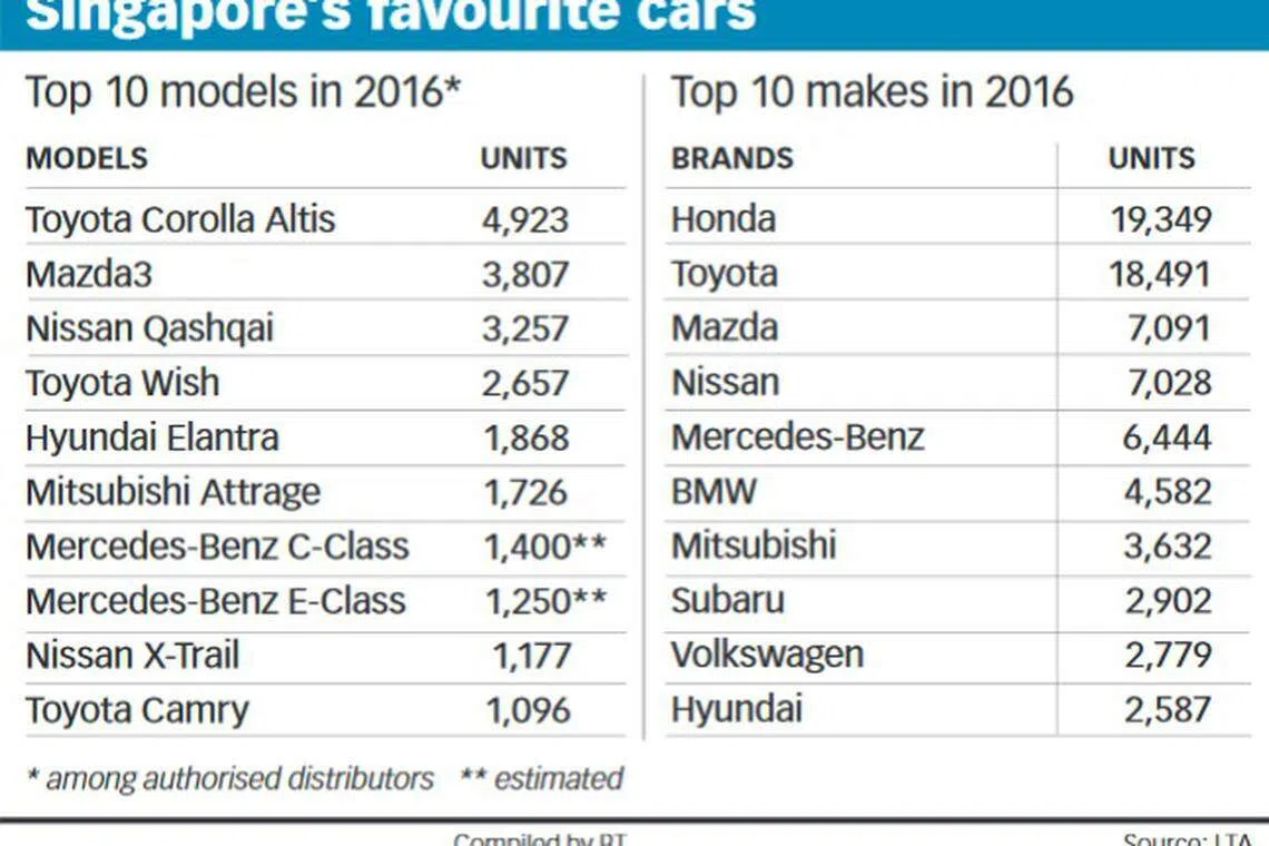Honda took over as Singapore's favourite car brand from the second half of last year, followed by Toyota, which had ruled the roost in 2015 and 2014.