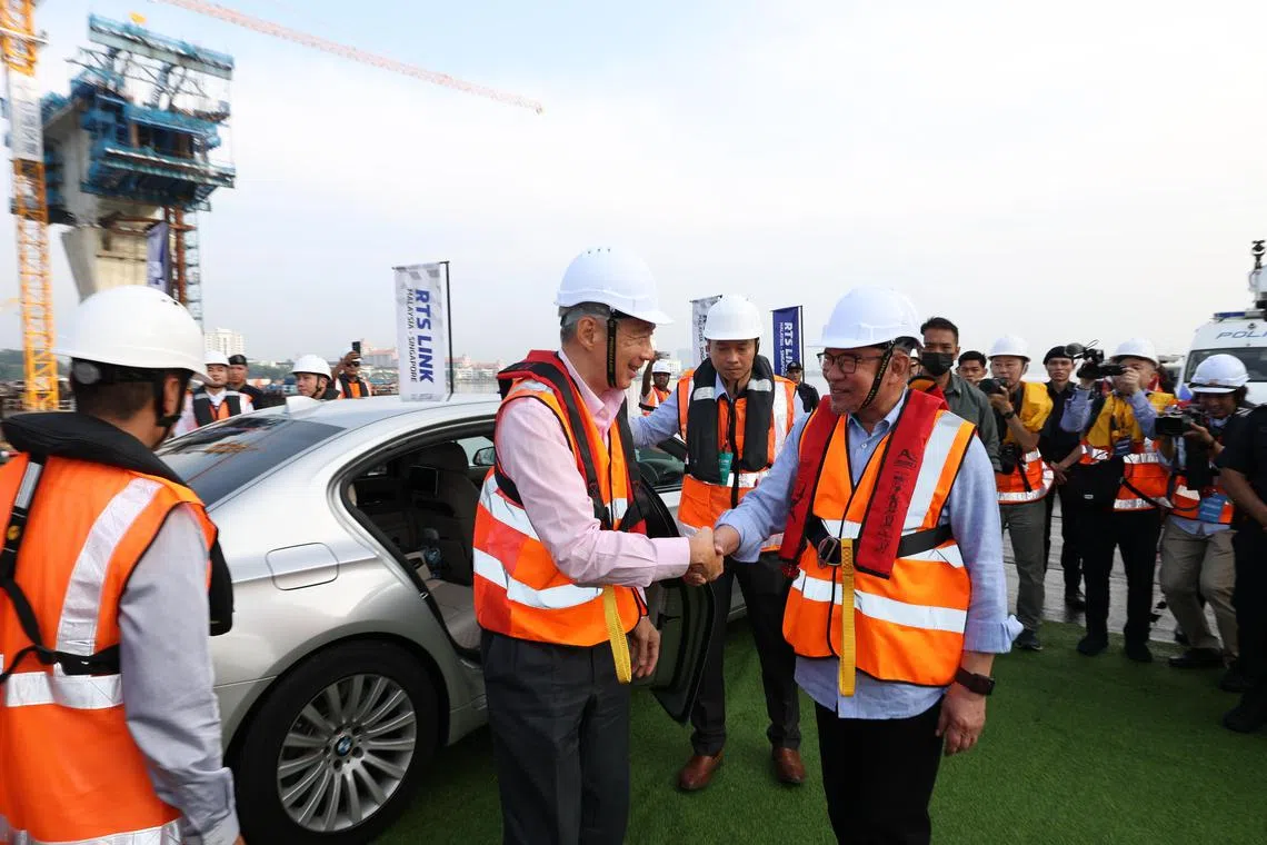 Singapore Prime Minister Lee Hsien Loong and Malaysia Prime Minister Anwar Ibrahim were at the RTS Link Marine Viaduct site in the Strait of Johor on Thursday to grace a ceremony to commemorate the milestone.