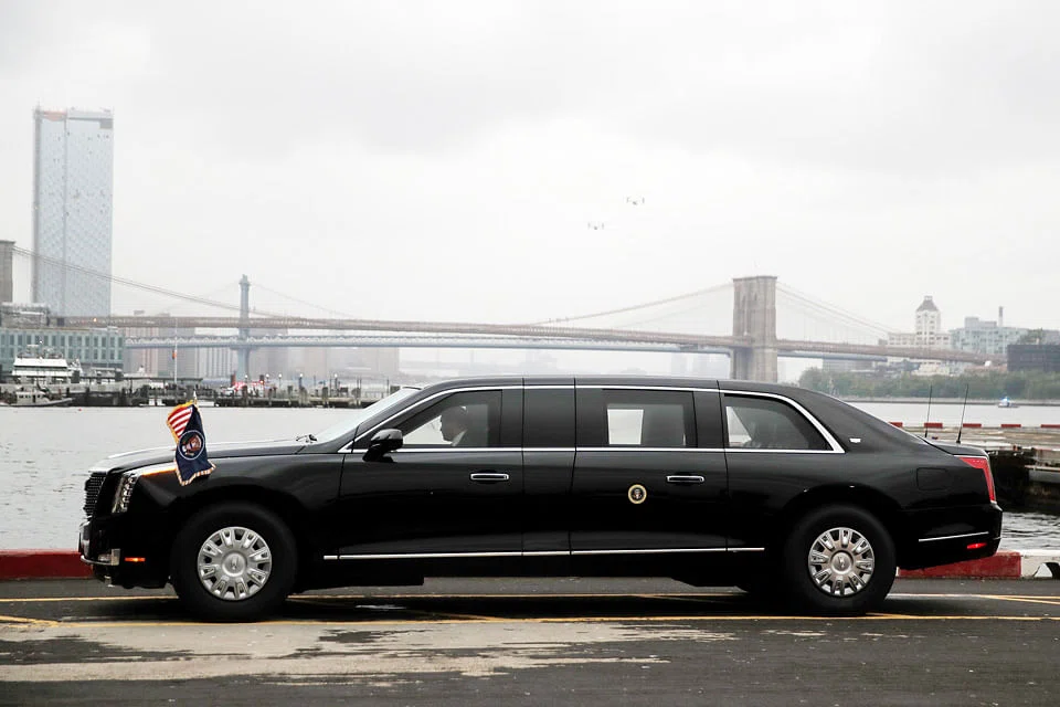 The custom-built Cadillac produced by General Motors appeared for the first time in public on Sunday - along with an identical version that travels in the motorcade - when it ferried President Donald Trump around New York ahead of this week's United Nations General Assembly meetings.