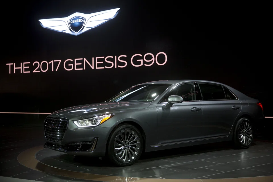 The Korean automaker unveiled its flagship sedan, the G90, at the Detroit auto show Monday that was designed to compete with the top offerings of storied brands like Mercedes and BMW by offering best-in-class performance and features.