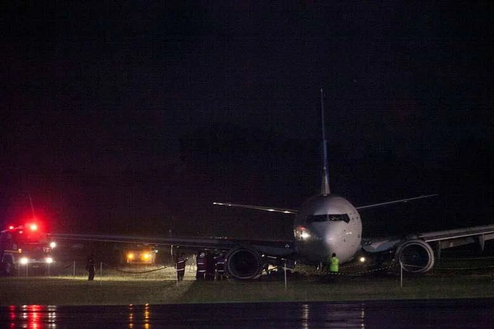 According to a statement on the website of flag carrier Garuda Indonesia, the Boeing 737-800NG en route from Jakarta "went off the runway, as a result of heavy rain that made the runway slippery".