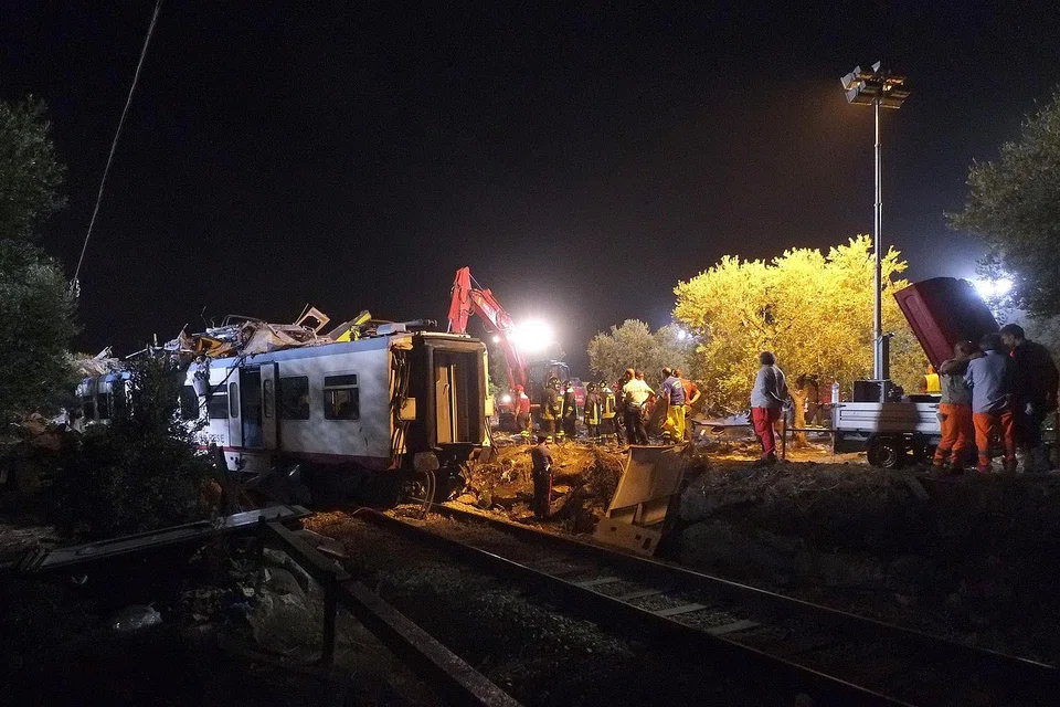 Emergency services raced to extract people from the wreckage of smashed carriages thrown across a single track into olive groves near the town of Andria, in what one witness described as an "apocalyptic scene".