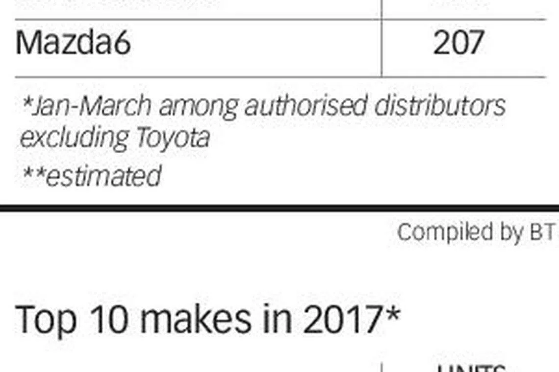 They were followed by BMW, which registered 1,223 cars in Q1, Mitsubishi with 1,088 and Subaru with 726. The trio hung on to their sixth, seventh and eighth spots respectively from end-2016.