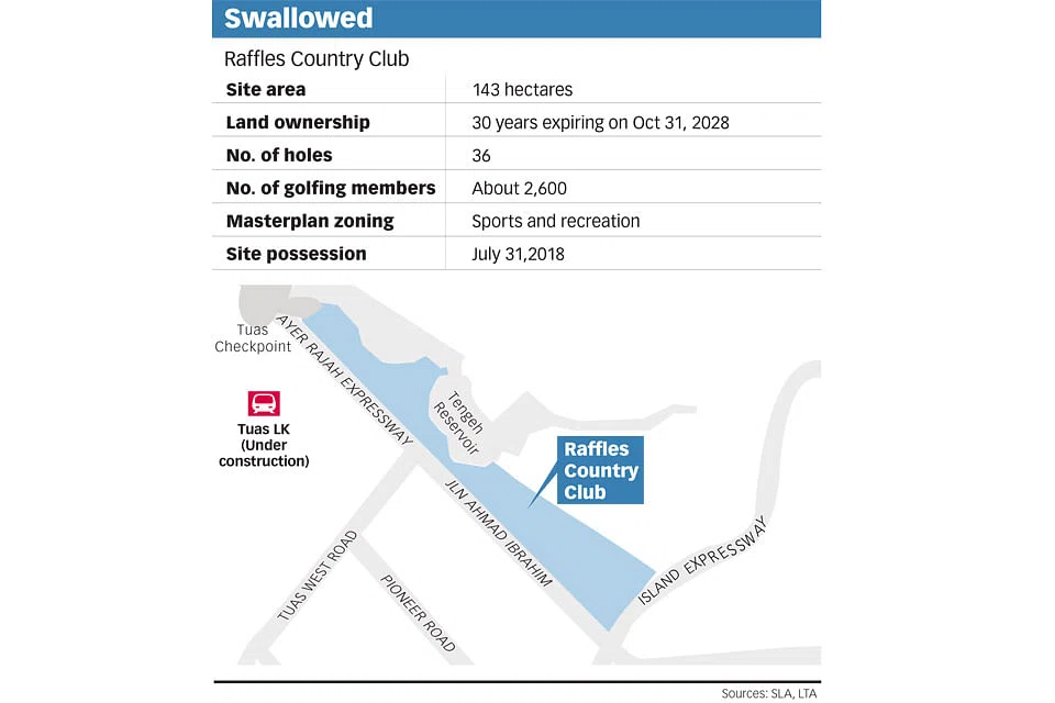 The government will take over the Raffles Country Club's (RCC) premises in Tuas by July 31, 2018, to build the Kuala Lumpur-Singapore High Speed Rail (HSR) tracks that run immediately after the bridge crossing near the Second Link.