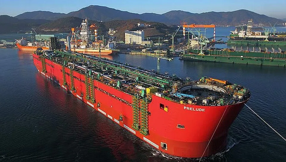 A Samsung spokeswoman said yesterday that the 488-metre long floating liquefied natural gas (FLNG) platform - named "Prelude" - was set in the water at its southern shipyard in Geoje on Nov 30.