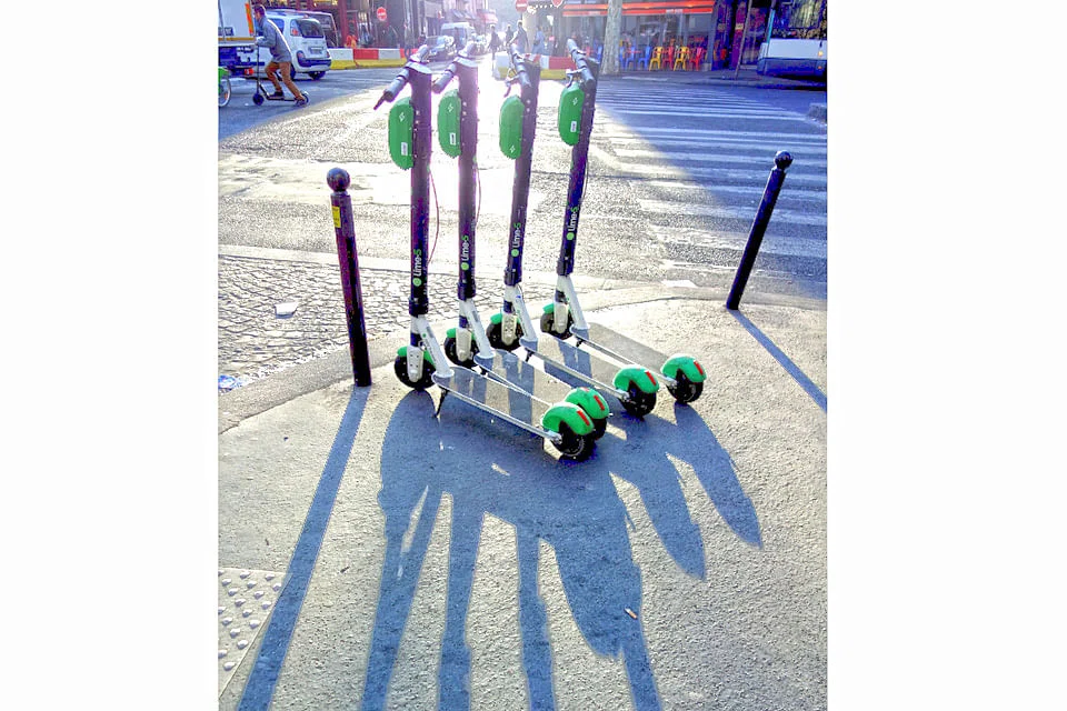 Nevertheless, the arguments in favour of electric scooters are nothing compared to the problems they cause. Let's start with the least noxious: people abandon them in the middle of pavements, in doorways, at street corners where pedestrians are trying to cross. In a city dense with tourists, many of them drunk out of their minds, the introduction of more than 4,000 tripping hazards is not a civic boon.