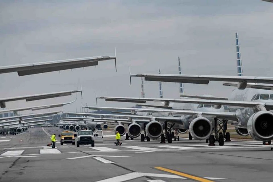 The recent steady and sustained drop in US commercial airline travel has seen passenger numbers fall 95 per cent below levels a year ago - an outcome that hasn't been seen since the dawn of the jet age in the early 1960s.