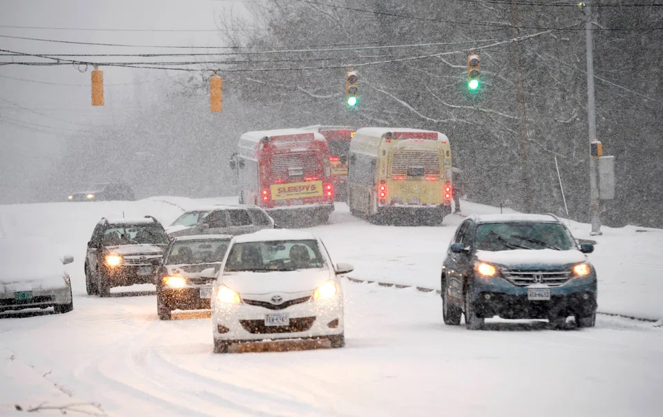 [WASHINGTON] Heavier than expected snow snarled traffic in Washington on Tuesday, forcing Attorney General Eric Holder to cancel a trip to New York for the funeral of former Governor Mario Cuomo, while the US Midwest prepared for brutal cold.