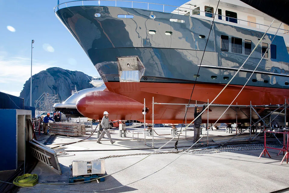 When the entire ship, replete with helicopter pad and five staterooms, reached the height of the quay, it rode a motorised dolly sideways onto a grid of metal rails. Then it rolled towards the giant work shed where until March, it will be cleaned, repaired and painted in a makeover costing two million euros (S$3 million).