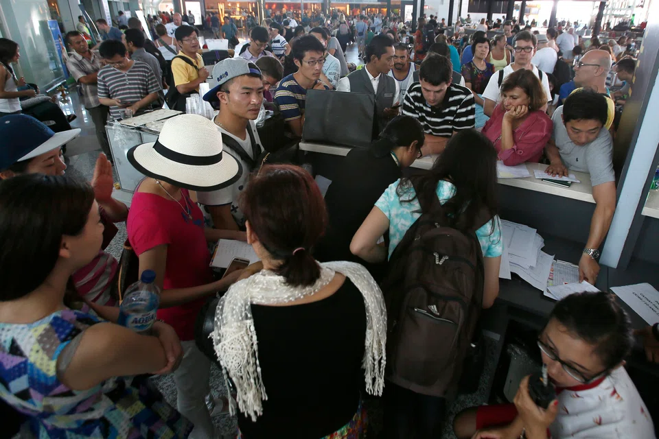 Weary travellers expecting to join their families for the final night of the Islamic fasting month instead spent the night in packed airport terminals, with many sleeping on the floor.