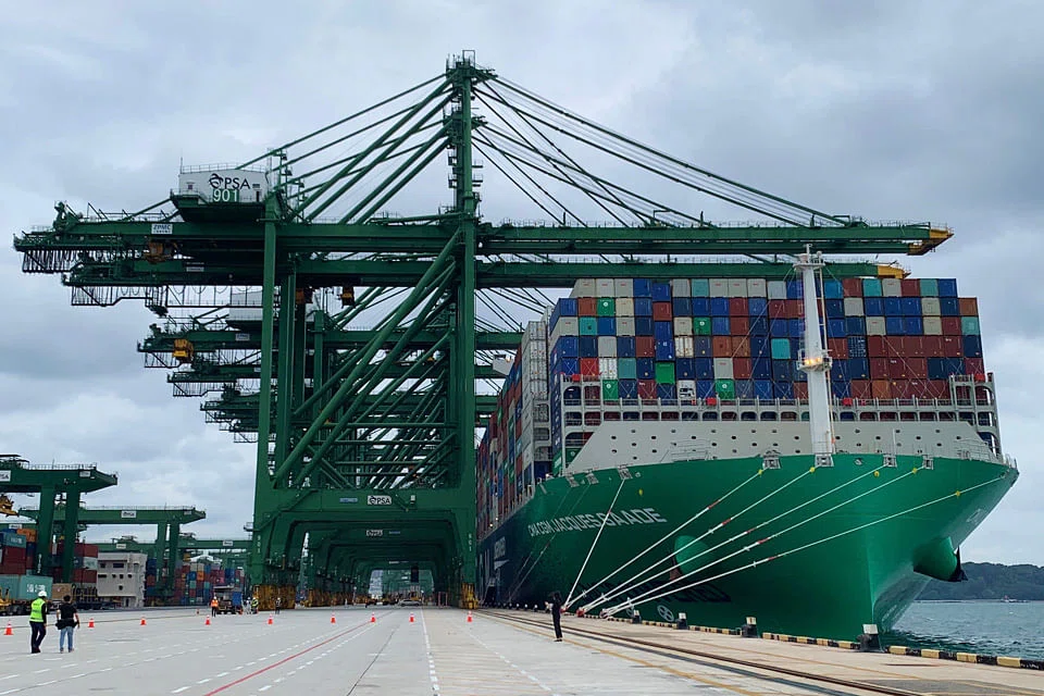 SINGAPORE on Monday welcomed the maiden arrival of the world's largest containership to be fully powered by liquefied natural gas (LNG) at the CMA CGM-PSA Lion Terminal.