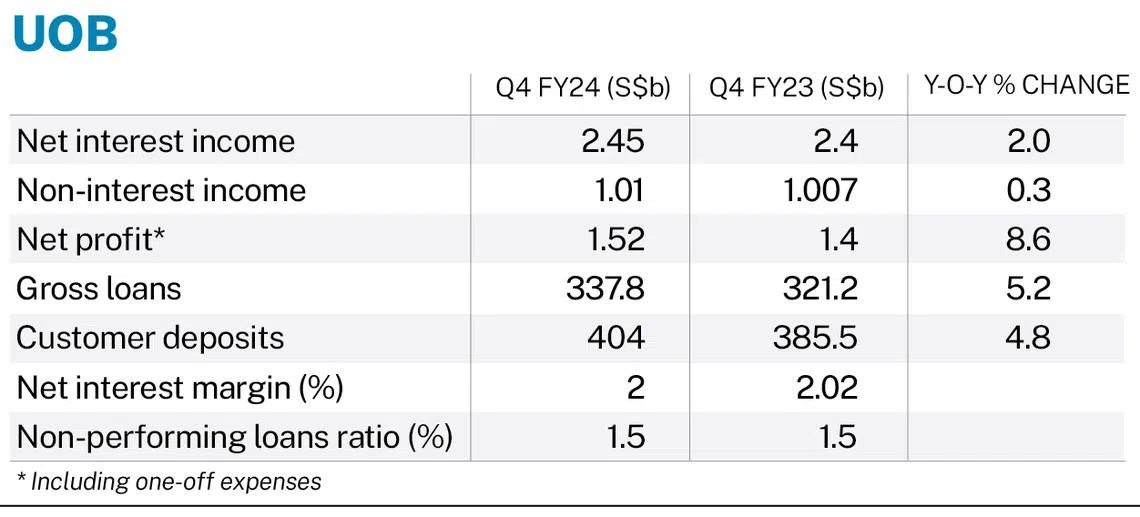 UOB’s non-performing loan ratio remained at 1.5 per cent as at Dec 31, 2024.