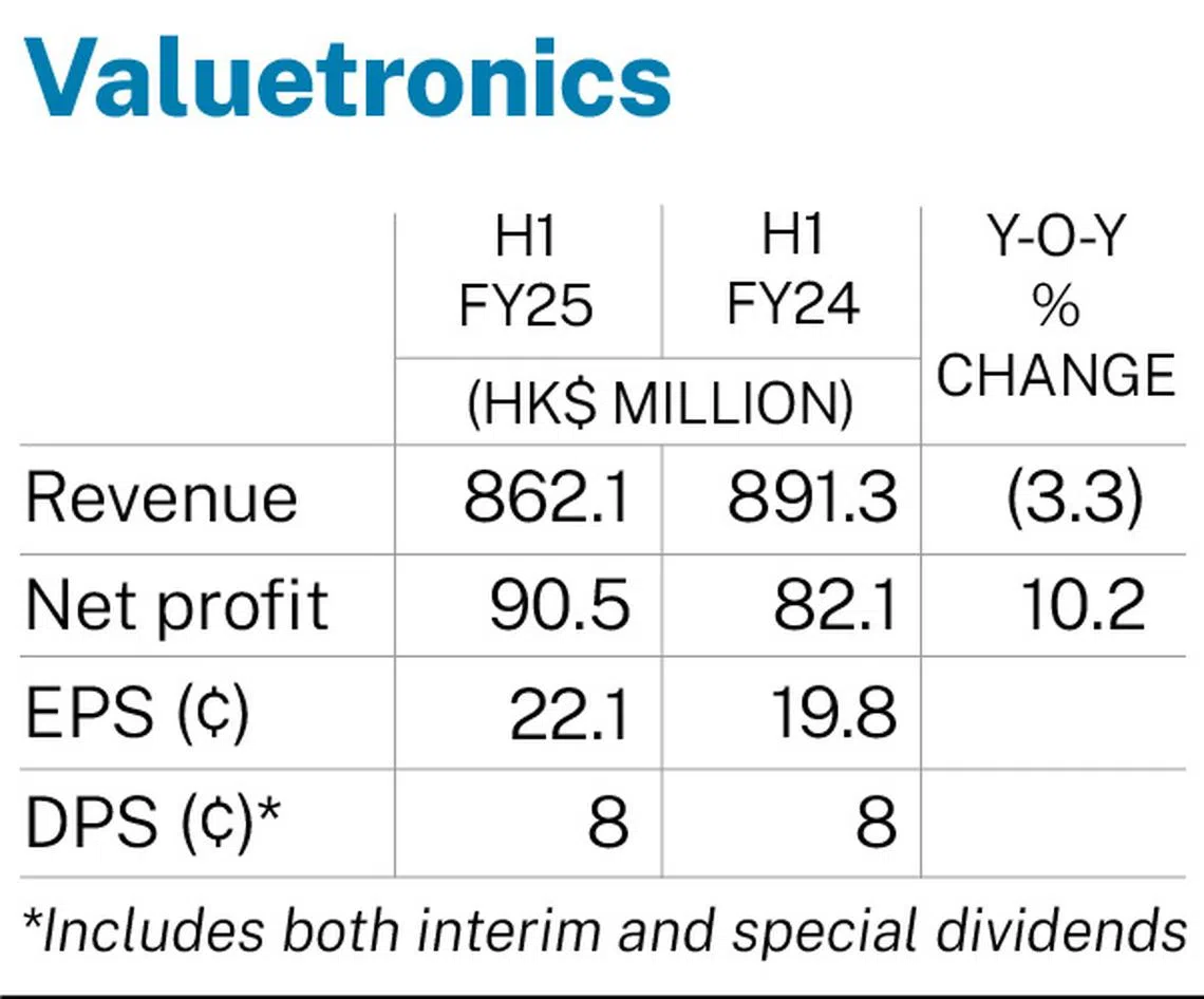 Valuetronics posts 10.2% rise in H1 net profit to HK$90.5 million