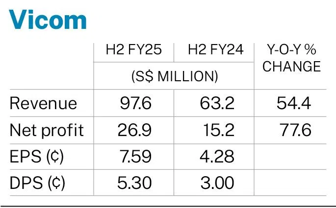 Vicom posts 77.6% surge in H2 net profit to S$26.9 million