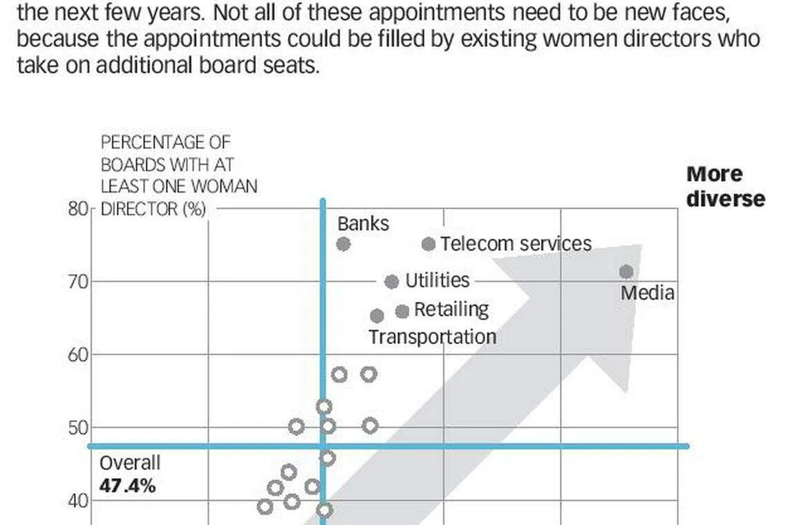 Notwithstanding that the existing 412 women directors could take on additional board seats to help achieve the target percentages, Mr Loh rejected suggestions that there might not be enough new women candidates to fill up the board seats.