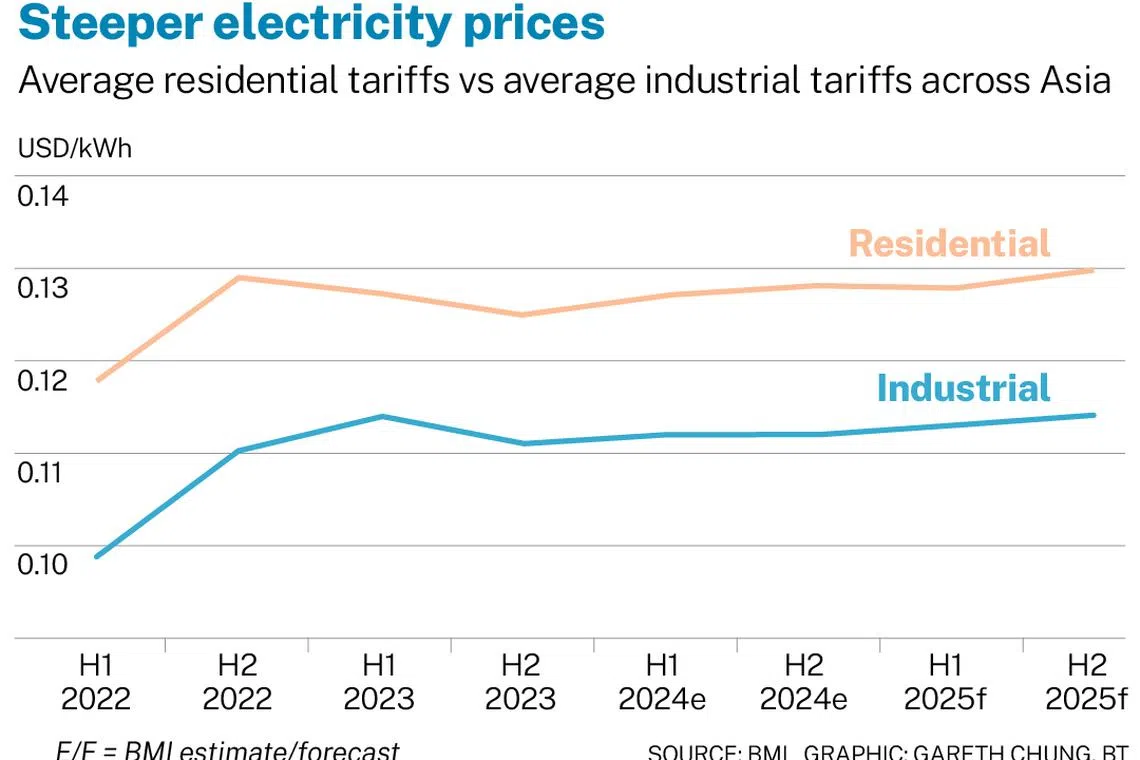 BMI’s report cited Malaysia’s plans to increase industrial tariffs between 2025 and 2027 as the country reduces its fuel subsidies. Meanwhile, South Korea last October raised industrial tariffs by 9.7 per cent to address financial challenges facing its largest utility company, Korea Electric Power Corporation, which is majority state-owned.
