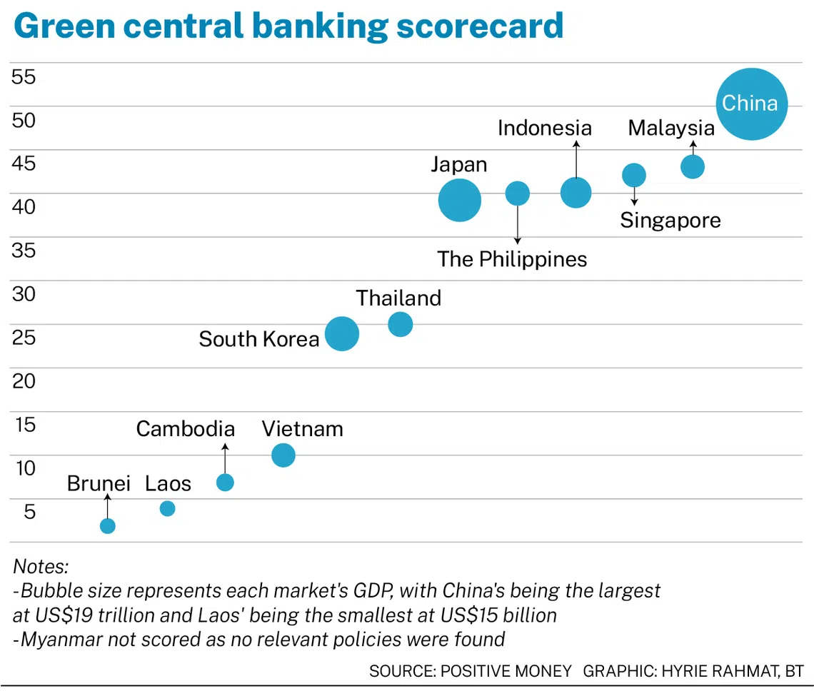 Dr Ma was speaking at a panel organised by Positive Money – a non-profit that advocates for central bank policies to align with climate objectives – which launched its first green central banking scorecard focusing on the Asean Plus Three markets. These refer to the 10 Asean countries, as well as China, Japan and South Korea.