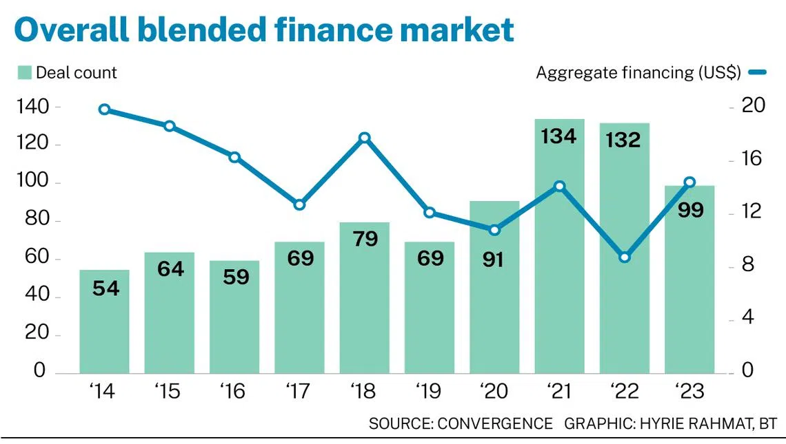 BLENDED finance deal value rose 66.7 per cent to hit US$15 billion in 2023, marking a five-year high, said a report by global blended finance network Convergence.