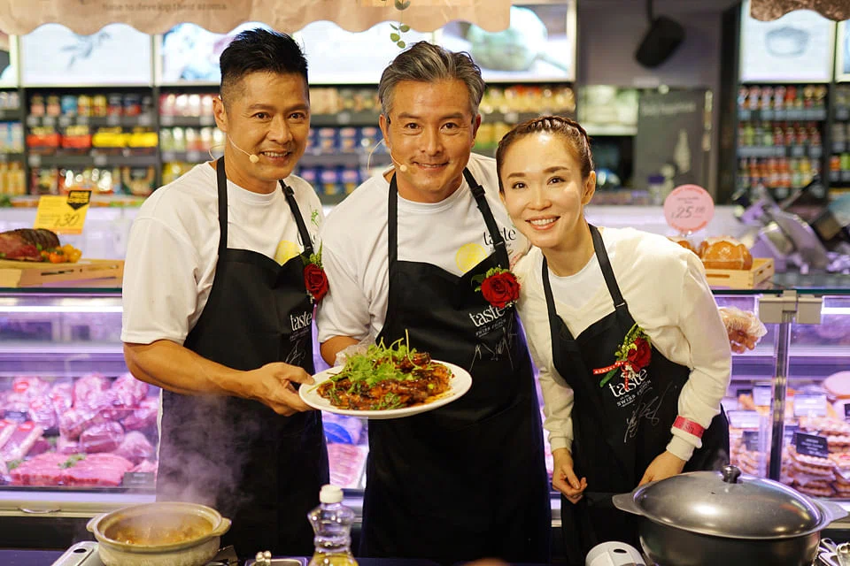 CELEBRITIES Li Nanxing and Christopher Lee cooked up a storm at Taste Butchery & Seafood Factory Outlet on Wednesday and raised S$13,200 for charity.