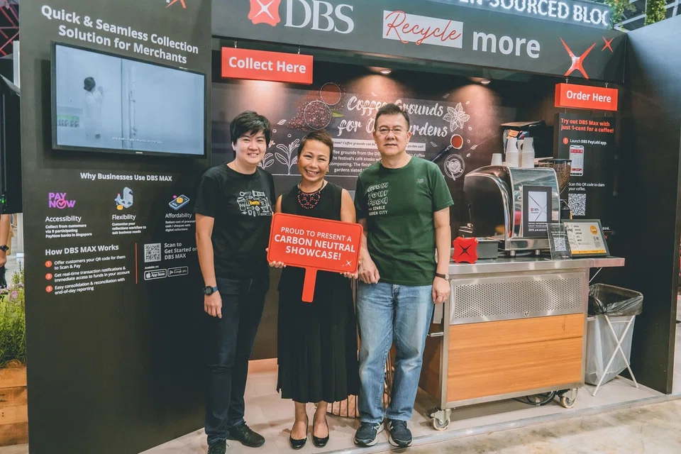 DBS Bank is showcasing its carbon-neutral booth at SFF this year as part of its sustainability efforts. It will also be recycling used coffee grounds produced at the festival.