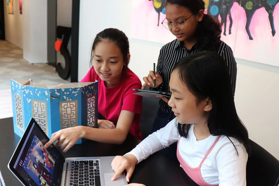 YOUNG visual artists from The Business Times Budding Artists Fund giving a feel of augmented reality to an intricate lattice patterned box designed by Sheraton Towers Singapore mooncakes.