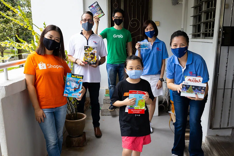 UOB's Gift for Good campaign partners Dairy Farm Singapore and Shopee Singapore provided gift items, ranging from grocery vouchers and family board games to children's books, at a special discount for UOB customers to purchase and to donate. Grab also provided dollar matching for Grab vouchers bought on the gift registry.