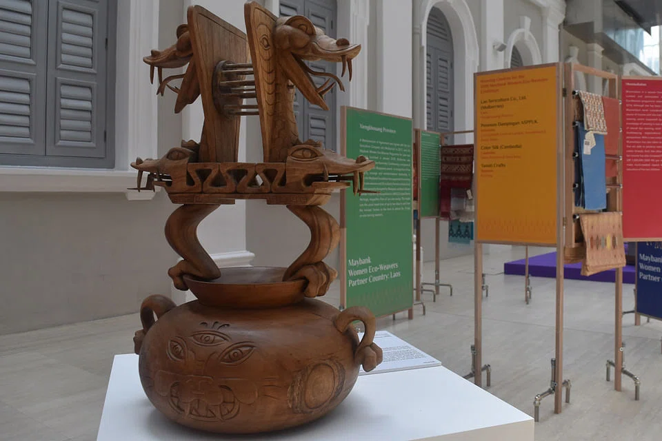 MAYBANK Foundation is presenting a travelling exhibition, Entwine: Maybank Women Eco-Weavers meets Southeast Asian Artists, of contemporary artworks by six South-east Asian artists who were inspired by the cultural history and art of the region's weaving heritage. The exhibits give a glimpse into the ancient art of traditional textile weaving.
