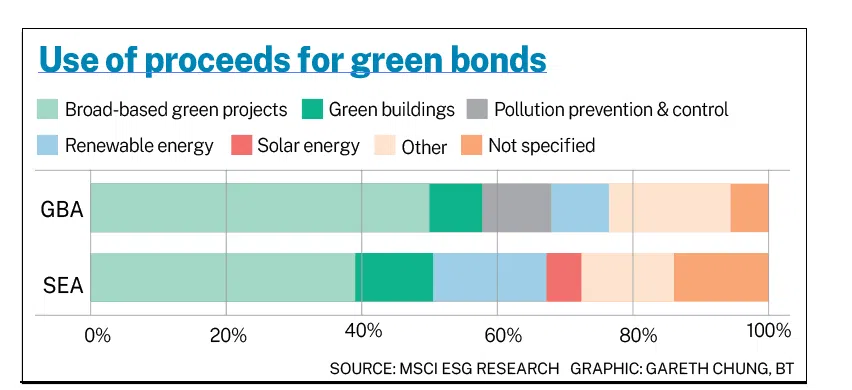 Green bond proceeds among South-east Asian issuers reflected more targeted allocations, with 17 per cent going to renewable energy projects, 12 per cent to green buildings and 5 per cent to solar energy.