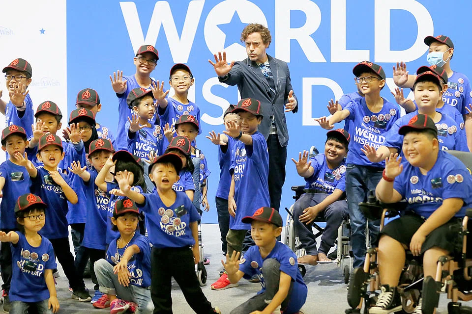 American actor Robert Downey Jr had stepped out from behind the curtains to the surprise of the children and their parents, before reciting a pledge with the children and handing out goodie bags. One boy had squealed: "Tony! Tony!"