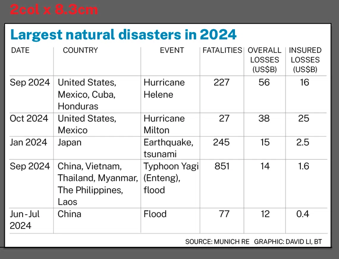 Losses from natural disasters in Asia-Pacific, Africa soar to US$91 billion in 2024: Munich Re