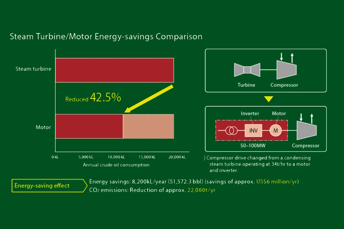 Such policy changes will make TMEIC’s high-efficiency, low-consumption motors a worthwhile investment, as the carbon credits earned can be used to offset taxable emissions. TMEIC estimates that companies that replace inefficient steam and gas turbines with its motorised drives will be able to recover their capital investment within two years.