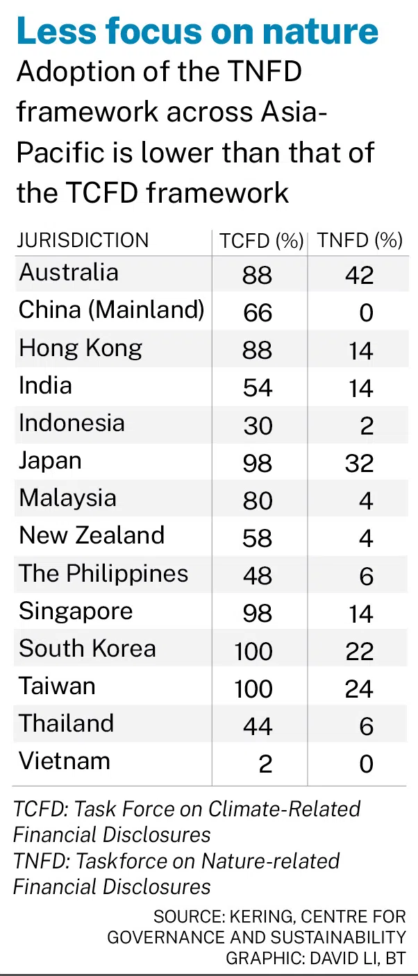 The study noted that nature-related disclosures are more nascent in Asia-Pacific than climate-related disclosures.