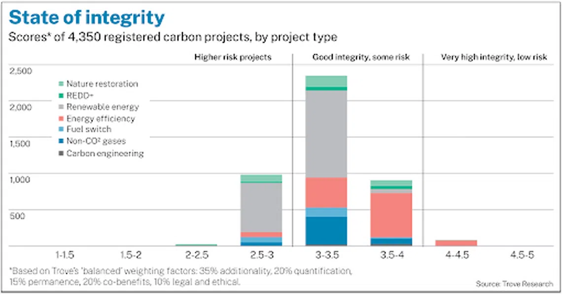 VERY few carbon projects can be considered to be of high integrity, if standards largely aligned to that of the Integrity Council for the Voluntary Carbon Market (ICVCM) were applied today, Trove Research has found.