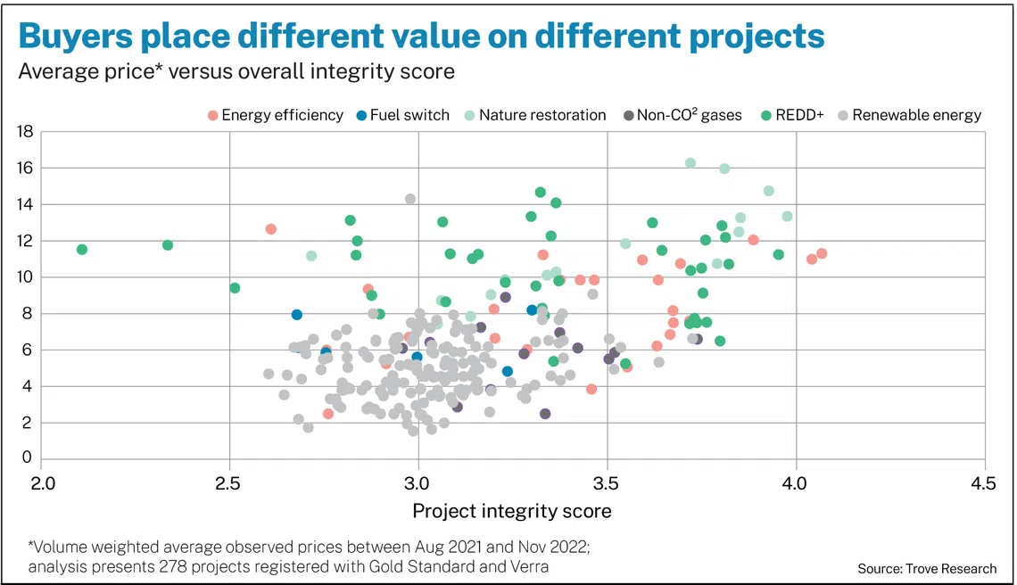 Nevertheless, it is encouraging that the average integrity scores of projects that started between 2019 and 2023 so far have risen to 3.5, from 3.3 among projects that started between 2000 and 2009, Trove said.