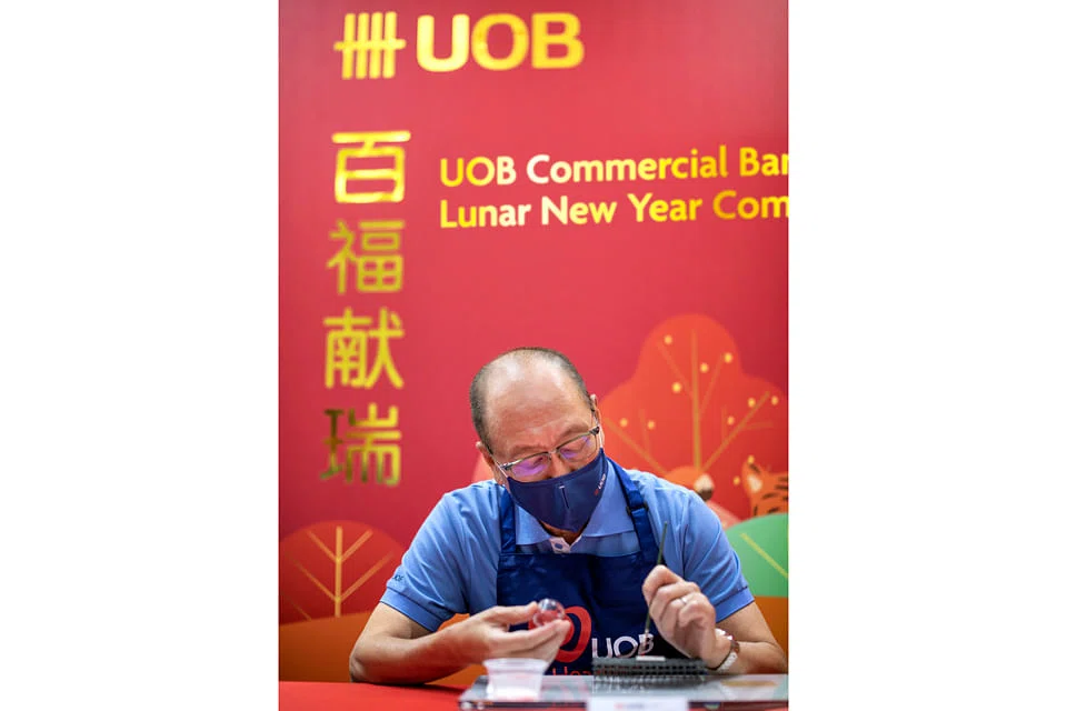 At the workshops, UOB executives and clients enameled the auspicious Chinese character fu, which means "blessings" or "fortune", on circular seals to express their wishes for a better year ahead.